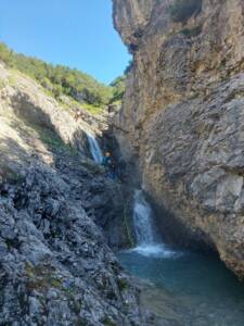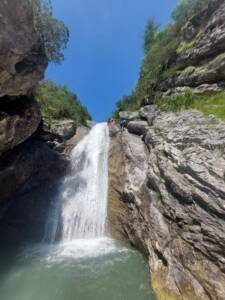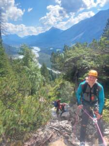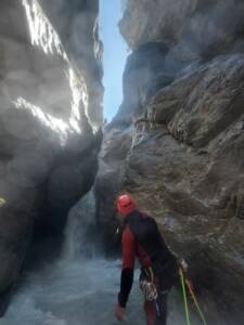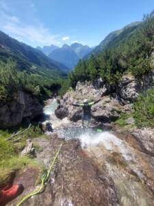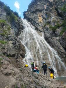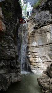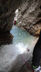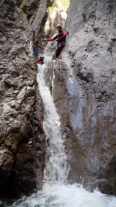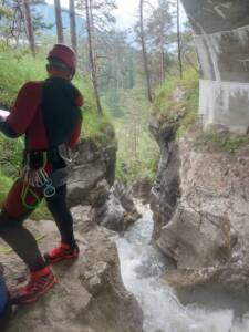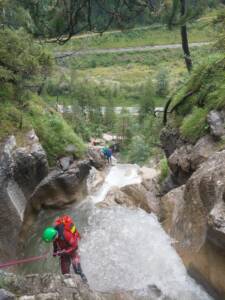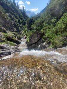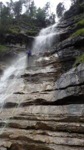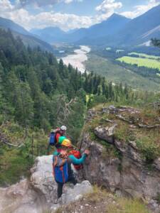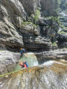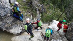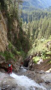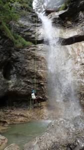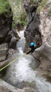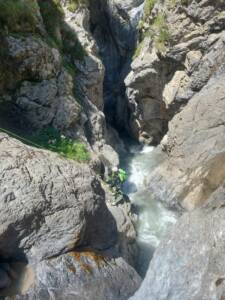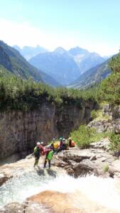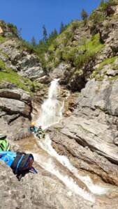 Ganz schön überrascht waren wir am 31Juli, als anstatt der sich angemeldeten 6-7 Personen, doppelt so viele Mitglieder am Treffpunkt Parkplatz Häselgehrbach eintrafen. Gottseidank hatten wir genug Seile eingepackt, so dass wir auch mit der großen Gruppe relativ schnell durch den lohnenswerten Häselgehrbach durchhüpfen konnten. Im Anschluss ging es nach Reutte wo wir neben dem Archbach zu den sehr Touristischen Stuibenfälle zurückgewandert sind. Reutte war auch gleichzeitig der Ausgangspunkt für die nahegelegenen drei Touren; Schwarzenbach, Wiesbach und Sulzlbach. Der letzte der drei genannten Bäche war der schönste und aquatischste. Nach den ersten drei Tagen ging es weiter Richtung Süden ins hintere Lechtal. Dort machten wir den Roßgumpenbach, der auch gleichzeitig das Highlight des Ausflugs war. Da die meisten von uns einen langen Heimweg hatten beschlossen wir am letzten Tag den unteren Teil vom Hochalpbach zu machen. Die Tour wäre sicher auch von weiter oben sehr lohnenswert gewesen. Auch wenn es bei den letzten Ausflügen mit dem Wetter nicht so geklappt hat, hatten wir diesmal richtig viele Sonnenstunden. Danke an die Teilnehmer insbesondere an Stephan und Michael für die gekühlten Radler nach der Tour!