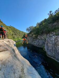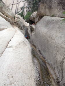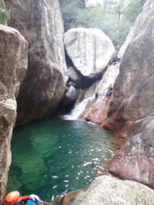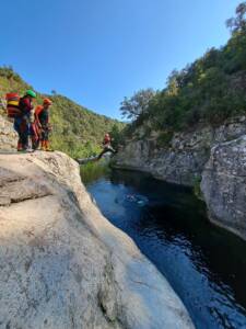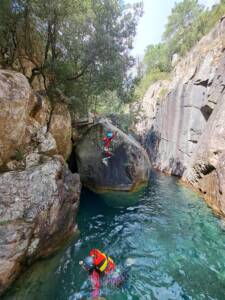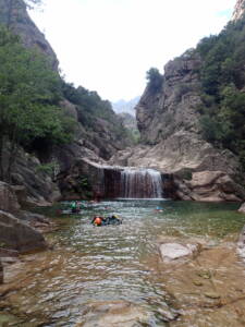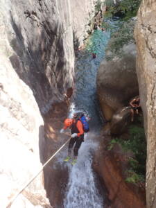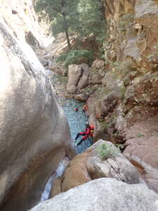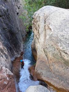 Am Samstag den 31. August trafen sich 12 Mitglieder auf der Insel Korsika um in der Gegend Solenzara einige Schluchten-Highlights zu begehen. Die ersten drei schönen Tage nutzten wir gleich aus um die Schluchten Travu, Purcaraccia, Polischellu und Vacca zu machen. Am vierten Tag machte uns das Wetter ein Strich durch die Rechnung (Gewitter mit lokalem starkem Niederschlag). Einige von uns nutzten die Gelegenheit für eine Sightseeing-Tour nach Bonifacio bzw. Shopping + Strand im Süden der Insel, wo das Wetter besser war. Begeistert von den ersten vier Canyons, ging es am fünften Tag bei wechselhaftem Wetter, etwas nördlicher zur Schlucht Macini. Die vegetationsreiche Schlucht hatte ein paar schöne Einzelstellen, konnte aber mit den anderen Touren aber nicht mithalten.