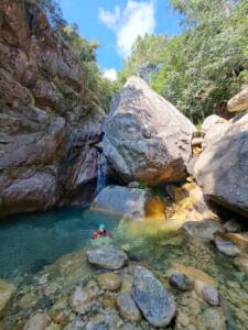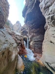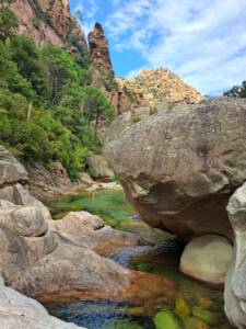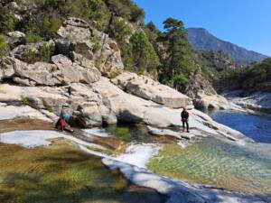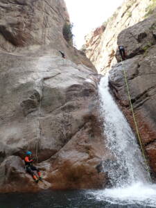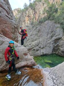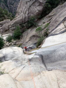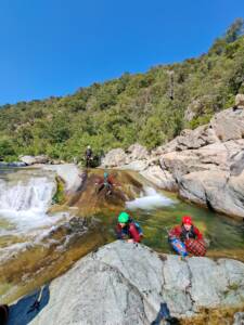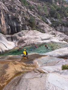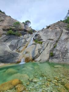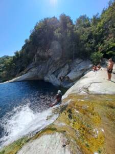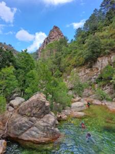 Eine Woche auf Korsika ist viel zu kurz um alle schönen Canyoningtouren und Plätze auf der Insel zu begehen und anzusehen, so müssen wir leider 😉 wieder kommen. Zum Empfehlen sind auf jeden Fall der Campingplatz „Rosumarinu“ (ca. 15min. vom Ort Solazara entfernt) der perfekt als Ausgangspunkt für die Touren im Gebiet Solenzara liegt und ein super Preis-Leistungs- Verhältnis hat (inkl. schöner Badestelle mit Sprungmöglichkeit). Die Touren Purcaraccia und Vacca waren jetzt nach der Hauptsaison auf jeden Fall alleine schon die Reise wert! Zu beachten ist das es seit 2024 für die Touren Purcaraccia, Pulischellu und Vacca wegen einem Unfall ein Nachweis einer Canyoning Befähigung nötig ist der auf einem neuen großen Ausgangsparkplatz (€5,-) oder von der Alpinpolizei in den Schluchten kontrolliert wird.